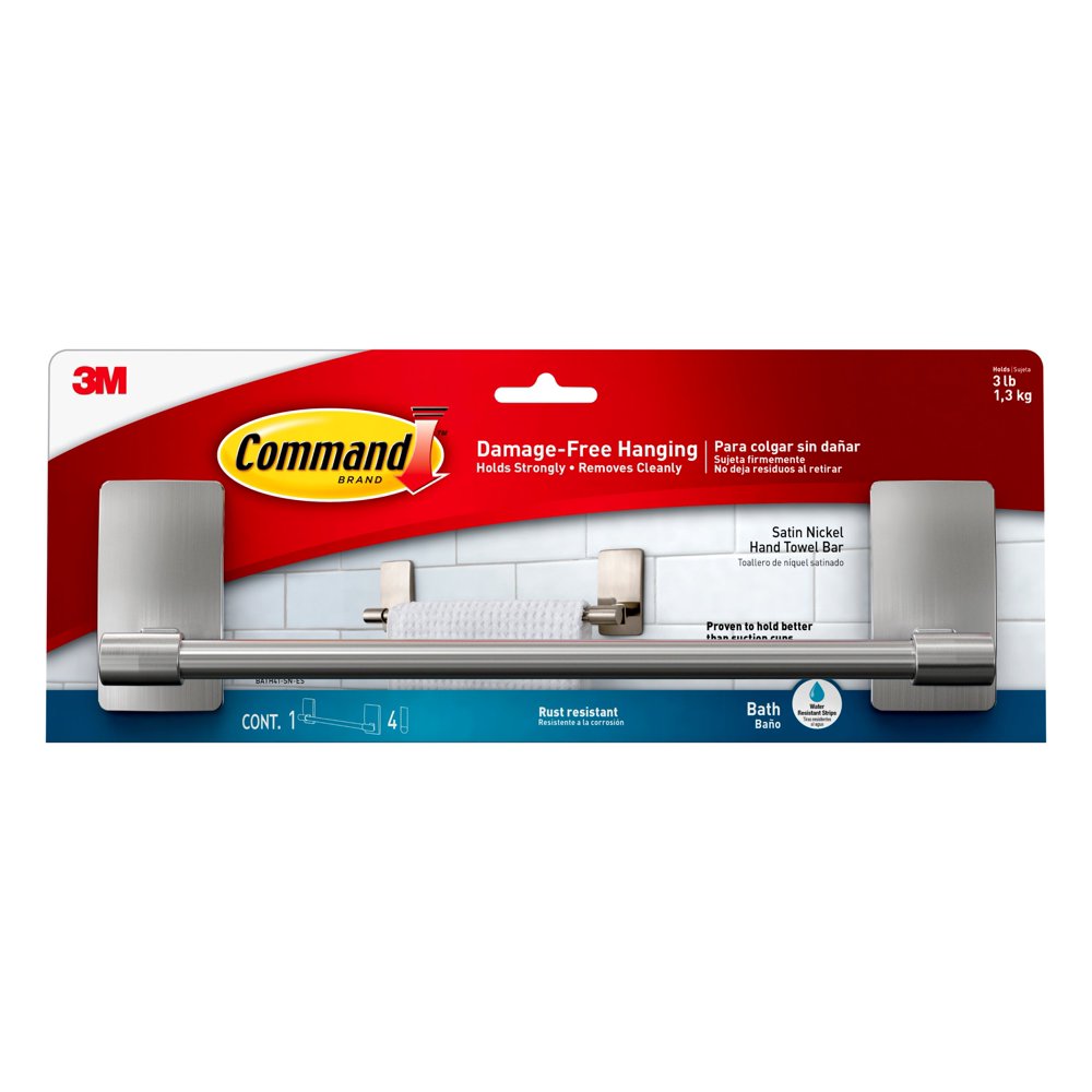 Command Satin Nickel Hand Towel Bar, 1 Towel Bar, 4 Strips - Walmart